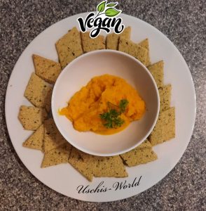 Dazu passt der Karottenaufstrich wunderbar: fein pürierte Karotten, kombiniert mit Sonnenblumenkernen, Gewürzen und einem Hauch Zitrone. Er ist nicht nur farbenfroh, sondern auch voller Geschmack und Nährstoffe – ideal als Brotaufstrich, Dip oder cremiges Topping zu den Crackern.