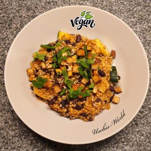 Das Schwarze Bohnen Gemüse Chili mit Hirse ist ein kräftiges, aromatisches Gericht, das die Würze eines klassischen Chilis mit der Leichtigkeit der pflanzlichen Küche verbindet. Schwarze Bohnen bringen eine angenehme Cremigkeit und reichlich pflanzliches Eiweiß, während buntes Gemüse für Frische und Farbe sorgt.